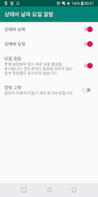تاريخ شريط الحالة اليوم المنبه هو تطبيق مجاني لنظام Android تم تطويره بواسطة 우리동네. تم إنشاء هذا التطبيق بناءً على الاحتياجات الشخصية ويتم مشاركته الآن مع الآخرين الذين قد يجدونه مفيدًا.